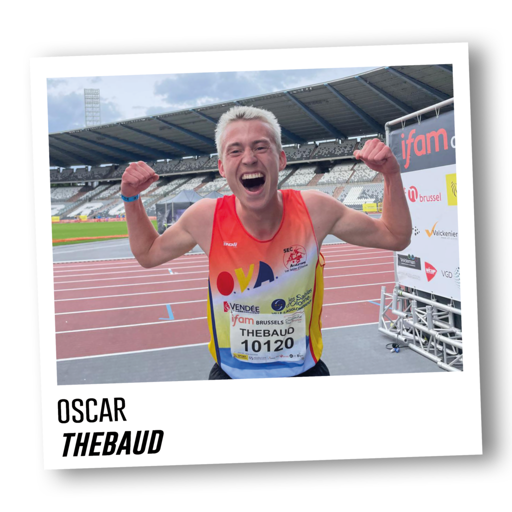 Né le 7 juillet 2004 à Nantes, Oscar Thebaud comptabilise aujourd’hui 5 sélections avec les équipes de France jeunes, que ce soit pour des championnats d’Europe de cross-country ou sur piste. Aujourd’hui licencié à l’Ouest Vendée Athlétisme et au Sables Étudiants Club, il est l’auteur d’une troisième place lors des championnats de France junior du 3000m steeple à Châteauroux en 2023 et détient les titres de vice-champion de France espoir de cross court à Challans en mars 2025 et de vice-champion d’Europe U23 de cross-country par équipe.